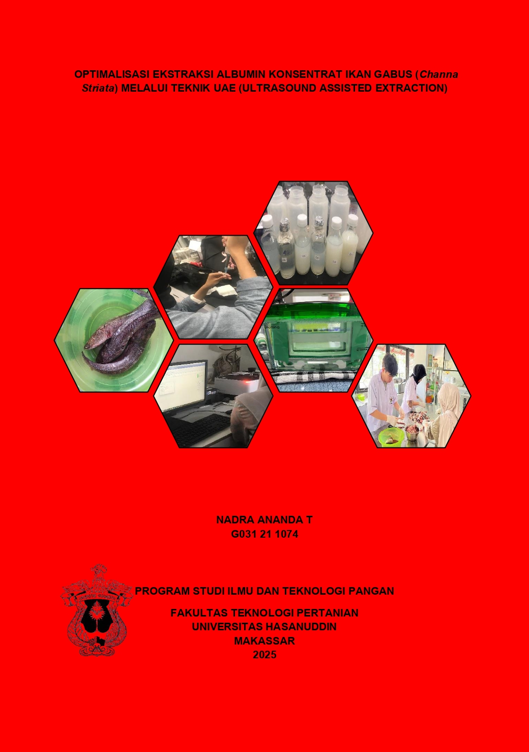 ANANDA T, NADRA (2026) Optimalisasi Produksi Albumin Konsentrat Ikan Gabus (Channa striana) Melalui Teknik Ultrasound Extraction Method (UAE) = Optimization of Albumin Production of Snakehead Fish Concentrate (Channa striana) Through Ultrasound Extraction Method (UAE). Skripsi thesis, Universitas Hasanuddin.
