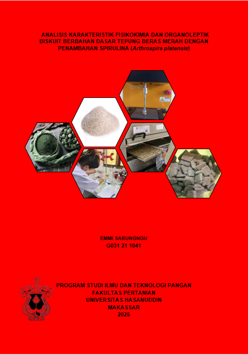 SARUNGNGU, EMMI (2026) Analisis Karakteristik Fisikokimia dan Organoleptik Biskuit Berbahan Dasar Tepung Beras Merah dengan Penambahan Spirulina (Arthrospira Platensis) = Analysis of physicochemical and organoleptic characteristics of biskuits made from brown rice flour with the addition of spirulina (Arthrospira platensis). Skripsi thesis, Universitas Hasanuddin.