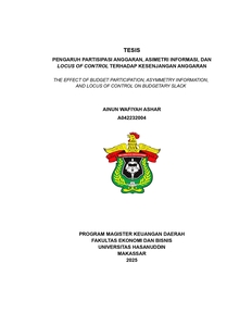 ASHAR, AINUN WAFIYAH (2025) PENGARUH PARTISIPASI ANGGARAN, ASIMETRI INFORMASI, DAN LOCUS OF CONTROL TERHADAP KESENJANGAN ANGGARAN = THE EFFECT OF BUDGET PARTICIPATION, ASYMMETRY INFORMATION, AND LOCUS OF CONTROL ON BUDGETARY SLACK. Thesis thesis, Universitas Hasanuddin.
