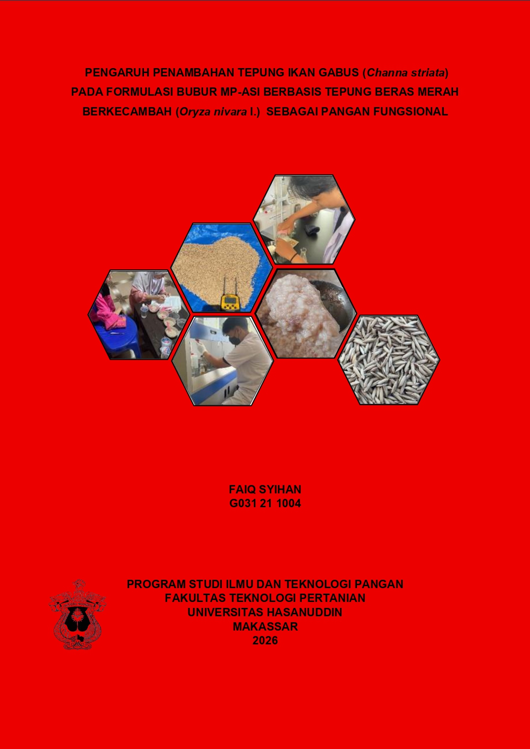 SYIHAN, FAIQ (2026) Pengaruh Penambahan Tepung Ikan Gabus (Channa Striata) Pada Formulasi Bubur Mp-Asi Berbasis Tepung Beras Merah Berkecambah (Oryza Nivara L.) Sebagai Pangan Fungsional = THE EFFECT OF ADDITIONAL SNAKEFISHERY (Channa striata) FLOUR ON THE FORMULATION OF GERMINATED RED RICE FLOUR-BASED COMPLETE FOOD (Oryza nivara L.) AS A FUNCTIONAL FOOD. Skripsi thesis, Universitas Hasanuddin.