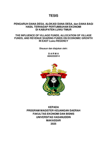 DARMA, DARMA (2025) PENGARUH DANA DESA, ALOKASI DANA DESA, dan DANA BAGI HASIL TERHADAP PERTUMBUHAN EKONOMI DI KABUPATEN LUWU TIMUR = THE INFLUENCE OF VILLAGE FUNDS, ALLOCATION OF VILLAGE FUNDS, AND REVENUE SHARING FUNDS ON ECONOMIC GROWTH IN EAST Luwu REGENCY. Thesis thesis, Universitas Hasanuddin.