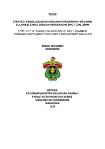 Abdul Muhaimin (2025). “Strategi Pengalokasian Anggaran Pemerintah Provinsi Sulawesi Barat dengan Pendekatan SWOT dan QSPM. Dibimbing oleh Prof. Dr. Musran Munizu, SE., M.Si., CIPM. Penelitian ini bertujuan untuk merumuskan strategi pengalokasian anggaran Pemerintah Provinsi Sulawesi Barat yang efektif dan berkelanjutan dalam rangka penanggulangan kemiskinan, dengan menggunakan pendekatan Strengths, Weaknesses, Opportunities, Threats (SWOT) dan Quantitative Strategic Planning Matrix (QSPM). Latar belakang penelitian ini didasarkan pada masih belum tercapainya target pengentasan kemiskinan di Sulawesi Barat, rendahnya kemandirian fiskal, serta belum optimalnya pemanfaatan potensi strategis daerah sebagai penyangga Ibu Kota Negara (IKN). Data penelitian dikumpulkan melalui studi dokumentasi, wawancara, dan analisis data sekunder dari berbagai instansi terkait. Hasil analisis SWOT menghasilkan sejumlah strategi yang kemudian diprioritaskan menggunakan metode QSPM. Tiga strategi dengan nilai Total Attractiveness Score (TAS) tertinggi adalah: (1) Future-Proof Local Economy yang berfokus pada penguatan ekonomi lokal berbasis teknologi, digitalisasi layanan publik, dan peningkatan PAD; (2) Resilient Tech & Green Industry yang menekankan pada pengembangan industri kecil dan menengah (IKM) ramah lingkungan dan inklusif terhadap tenaga kerja miskin; dan (3) Smart Economy Acceleration yang mengarahkan alokasi anggaran pada integrasi digital, literasi teknologi, dan inovasi desa untuk percepatan transformasi ekonomi. Penelitian ini merekomendasikan agar strategi-strategi tersebut diintegrasikan ke dalam perencanaan pembangunan daerah melalui program dan kegiatan sesuai Kepmendagri Nomor 900.1.15.5-3406 Tahun 2024, sehingga pelaksanaannya memiliki dasar nomenklatur resmi dan indikator kinerja yang terukur. Implementasi strategi ini diharapkan dapat meningkatkan efektivitas pengalokasian anggaran, memperkuat kemandirian fiskal, dan mempercepat penurunan angka kemiskinan di Provinsi Sulawesi Barat secara berkelanjutan
