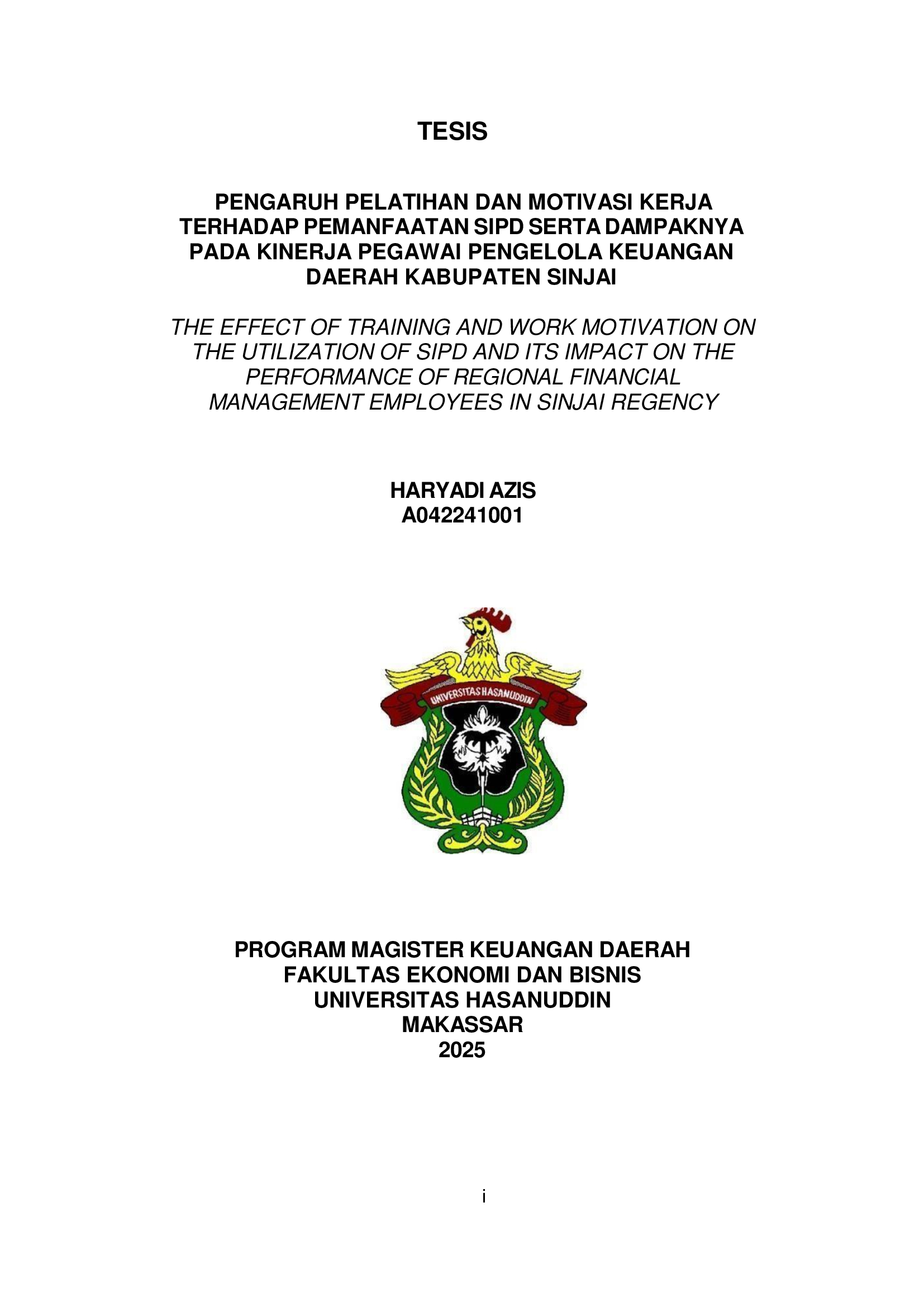 PENGARUH PELATIHAN DAN MOTIVASI KERJA TERHADAP PEMANFAATAN SIPD SERTA DAMPAKNYA PADA KINERJA PEGAWAI PENGELOLA KEUANGAN DAERAH KABUPATEN SINJAI = THE EFFECT OF TRAINING AND WORK MOTIVATION ON THE UTILIZATION OF SIPD AND ITS IMPACT ON THE PERFORMANCE OF REGIONAL FINANCIAL MANAGEMENT EMPLOYEES IN SINJAI REGENCY