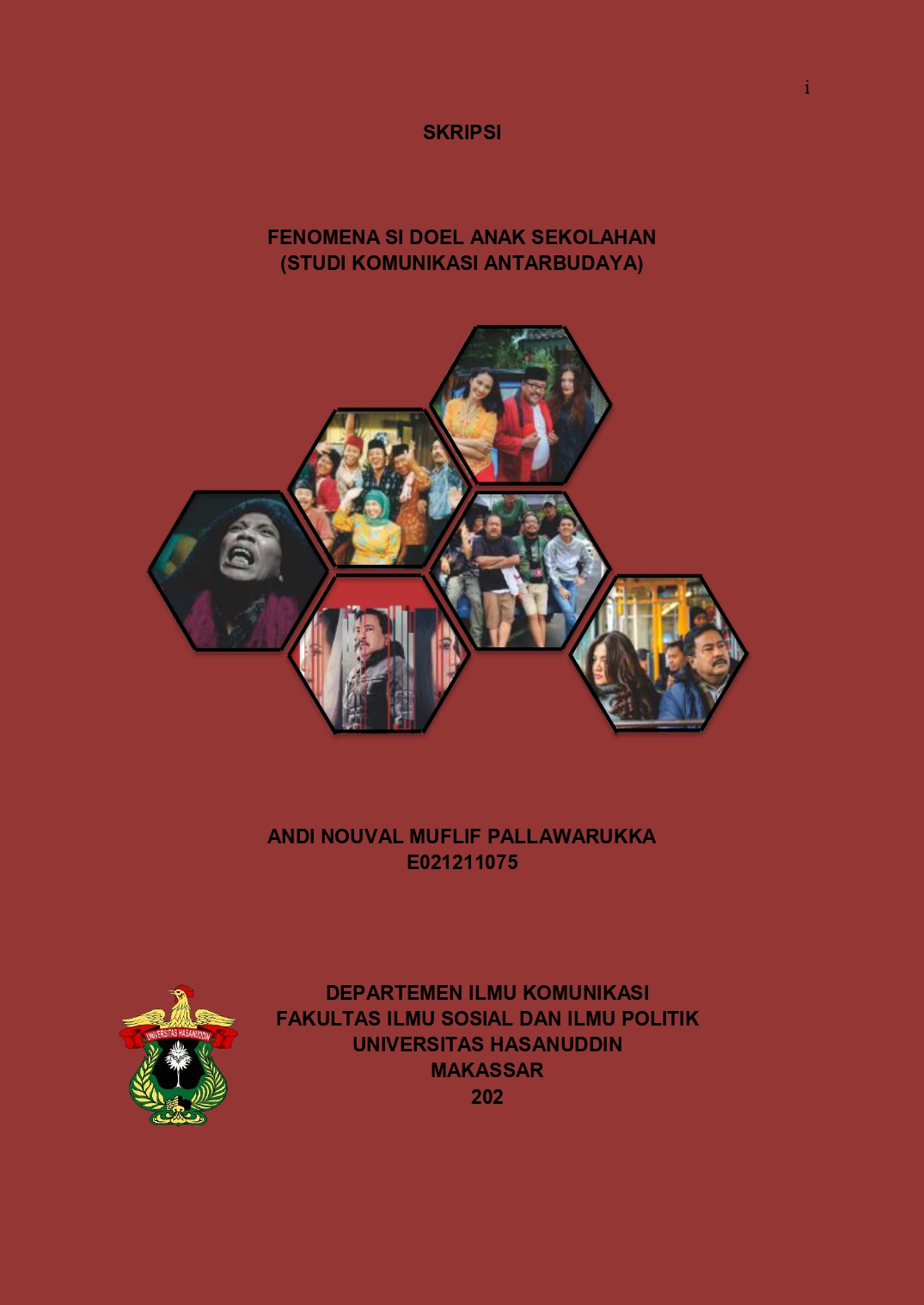 ABSTRAK ANDI NOUVAL MUFLIF PALLAWARUKKA. Fenomena Si Doel Anak Sekolahan: Studi Komunikasi Antarbudaya. (Dibimbing oleh Das’ad Latif) Latar belakang. Film merupakan media populer yang tidak hanya berfungsi sebagai hiburan, tetapi juga sebagai sarana penyampai nilai-nilai budaya dan refleksi realitas sosial. Si Doel The Movie, sebagai kelanjutan dari serial legendaris Si Doel Anak Sekolahan, menyajikan narasi yang kuat mengenai budaya Betawi dan dinamika komunikasi antarbudaya di era modern. Tujuan Penelitian ini adalah untuk menganalisis makna denotasi, konotasi, dan mitos dalam film tersebut serta menelaah bagaimana film ini mampu merepresentasikan budaya Betawi secara menarik dan relevan bagi generasi muda. Metode penelitian menggunakan pendekatan kualitatif dengan metode analisis semiotika Roland Barthes untuk mengkaji unsur-unsur tanda dalam film. Hasil Penelitian menunjukkan bahwa Si Doel The Movie berhasil merepresentasikan budaya Betawi melalui simbol-simbol visual, bahasa, nilai kekeluargaan, serta stereotip yang terbangun secara kultural. Film ini juga menunjukkan bagaimana revitalisasi media dapat memperkuat pelestarian budaya lokal dalam konteks globalisasi dan memperkuat empati lintas budaya.