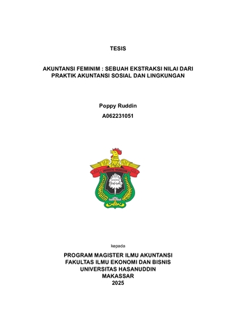 RUDDIN, POPPY (2025) AKUNTANSI FEMINIM : SEBUAH EKSTRAKSI NILAI DARI PRAKTIK AKUNTANSI SOSIAL DAN LINGKUNGAN = FEMINIME ACCOUNTING : VALUE EXTRACTION FROM SOCIAL AND ENVIRONMENTAL ACCOUNTING PRACTICES. Thesis thesis, Universitas Hasanuddin.