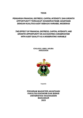 AKUBA, ICHLASUL AMAL (2025) Pengaruh Financial Distress, Capital Intensity, dan Growth Opportunity terhadap Konservatisme Akuntansi dengan Kualitas Audit sebagai Variabel Moderasi = The Effect Of Financial Distress, Capital Intensity, And Growth Opportunity On Accounting Conservatism With Audit Quality As A Moderating Variable. Thesis thesis, Universitas Hasanuddin.