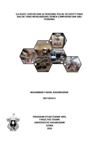 BASRINUDDIN, MUHAMMAD FADHIL (2025) UJI KUAT LENTUR DAN ULTRASONIC PULSE VELOCITY PADA BALOK YANG MENGANDUNG SEMEN CAMPURAN DAN ABU TERBANG = FLEXURAL STRENGTH AND ULTRASONIC PULSE VELOCITY TESTS ON BLOCKS CONTAINING MIXED CEMENT AND FLY ASH. Skripsi thesis, Universitas Hasanuddin.
