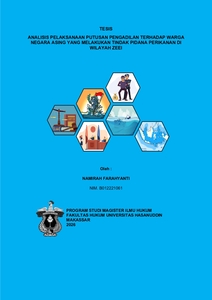 NAMIRAH FARAHYANTI . B012221061 Analisis pelaksanaan putusan pengadilan terhadap warga negara asing yang melakukan tindak pidana perikanan di wilayah ZEEI dibimbing oleh Aidir Amin Daud. Latar Belakang: Indonesia sebagai negara kepulauan menghadapi tantangan penangkapan ikan ilegal di Zona Ekonomi Eksklusif (ZEEI). Kebijakan hukum yang menerapkan sanksi denda tanpa pidana pengganti bagi Warga Negara Asing, sebagai bentuk kepatuhan pada UNCLOS 1982, secara praktis menciptakan kondisi "Eksekusi Buntu," di mana putusan denda miliaran rupiah konsisten gagal dieksekusi. Penelitian ini bertujuan menganalisis pertimbangan di balik kebijakan tersebut dan menilai efektivitas pelaksanaannya di lapangan. Tujuan : Penelitian ini bertujuan untuk menganalisis pertimbangan pembentuk undang-undang yang memilih sanksi denda bagi warga negara asing (WNA) pelaku illegal fishing di ZEEI serta menilai efektivitas pelaksanaan eksekusi pengadilan dalam menjatuhkan sanksi tersebut. Metode: Penelitian ini menggunakan metode empiris dengan pendekatan sosio-yuridis. Data primer diperoleh melalui survei dan wawancara terstruktur dengan para informan kunci yang terdiri dari hakim, jaksa, dan aparat Pengawas Sumber Daya Kelautan dan Perikanan (PSDKP). Analisis dilakukan menggunakan kerangka teori efektivitas hukum dari Soerjono Soekanto untuk mengidentifikasi kegagalan sistemik dalam penegakan hukum. Hasil: Hasil penelitian mengungkap kegagalan di semua lini. Secara substansi, ketiadaan sanksi kurungan pengganti denda (Pasal 102 UU Perikanan) menjadikan denda sebagai sanksi simbolis. Kegagalan ini diperparah oleh defisit sarana dan fasilitas yang menyebabkan degradasi nilai aset sitaan secara masif, sehingga negara mengalami kerugian finansial ganda. Kebijakan ini terbukti gagal memberikan efek jera bagi pelaku internasional dan mencederai rasa keadilan publik. Kesimpulan : Penerapan pidana denda tidak efektif. Meskipun secara konseptual merupakan konsekuensi logis dari hukum internasional, secara praktis kondisi "Eksekusi Buntu" melumpuhkan penegakan hukum. Diperlukan reformasi kebijakan menuju "pragmatisme eksekutorial" dan penguatan diplomatik melalui perjanjian bilateral untuk menciptakan penegakan hukum yang efektif dan berkeadilan.