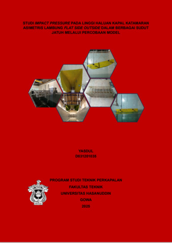 YASDUL, YASDUL (2025) Studi Impact Pressure Pada Linggi Haluan Kapal Katamaran Asimetris Lambung Flat Side Outside Dalam Berbagai Sudut Jatuh Melalui Percobaan Model = Impact Pressure Study on the Bow Height of an Asymmetric Catamaran with a Flat Side Outside Hull in Various Falling Angles Through Model Experiments. Skripsi thesis, Universitas Hasanuddin.