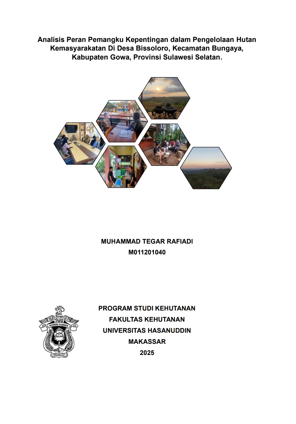 RAFIADI, MUHAMMAD TEGAR (2025) Analisis Peran Pemangku Kepentingan dalam Pengelolaan Hutan Kemasyarakatan (HKm) di Desa Bissoloro Kabupaten Gowa Provinsi Sulawesi Selatan = Analysis of Stakeholder Roles in the Management of Community Forests in Bissoloro Village, Bungaya Subdistrict, Gowa Regency, South Sulawesi Province. Skripsi thesis, Universitas Hasanuddin.