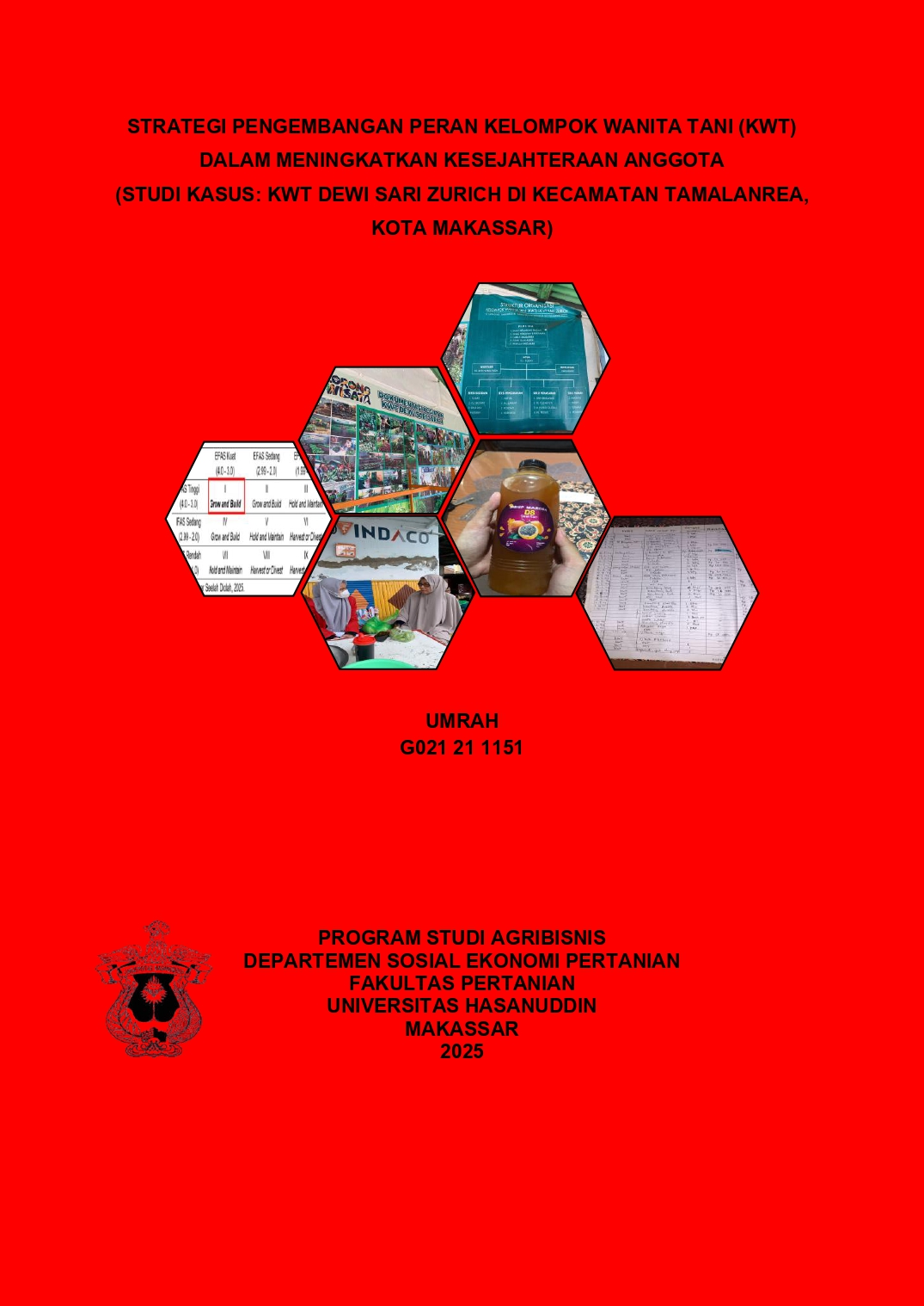 UMRAH, UMRAH (2025) STRATEGI PENGEMBANGAN PERAN KELOMPOK WANITA TANI (KWT) DALAM MENINGKATKAN KESEJAHTERAAN ANGGOTA (STUDI KASUS: KWT DEWI SARI ZURICH DI KECAMATAN TAMALANREA, KOTA MAKASSAR) = STRATEGY FOR DEVELOPING THE ROLE OF WOMEN FARMERS GROUPS (KWT) IN IMPROVING MEMBER WELFARE (CASE STUDY: KWT DEWI SARI ZURICH IN TAMALANREA DISTRICT, MAKASSAR CITY). Skripsi thesis, Universitas Hasanuddin.