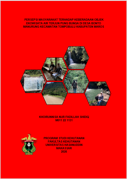 SHIDIQ, KHOIRUNNISA NUR FADILLAH (2026) Persepsi Masyarakat Terhadap Keberadaan Objek Ekowisata Air Terjun Pung Bunga Di Desa Bonto Manurung Kecamatan Tompobulu Kabupaten Maros = Community Perception of the Existence of the Pung Bunga Waterfall Ecotourism Object in Bonto Manurung Village, Tompobulu District, Maros Regency. Skripsi thesis, Universitas Hasanuddin.