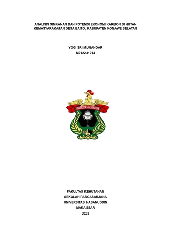 MUNANDAR, YOGI SRI (2025) ANALISIS SIMPANAN DAN POTENSI EKONOMI KARBON DI HUTAN KEMASYARAKATAN DESA BAITO, KABUPATEN KONAWE SELATAN = ANALYSIS OF CARBON STORAGE AND ECONOMIC POTENTIAL IN FORESTS OF THE BAITO VILLAGE COMMUNITY, SOUTH KONAWE REGENCY. Thesis thesis, Universitas Hasanuddin.
