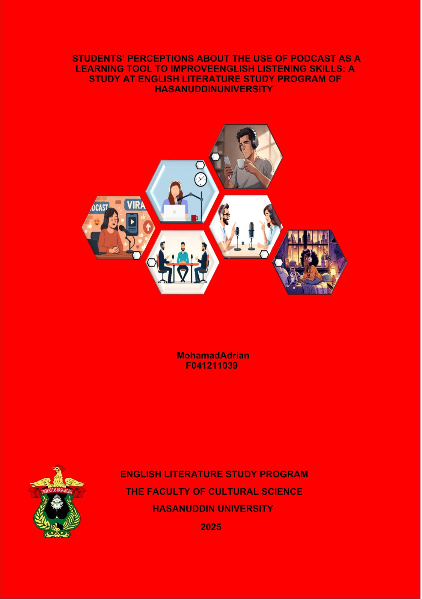 Mohamad Adrian, 2025. Persepsi Mahasiswa tentang Penggunaan Podcast sebagai Alat Pembelajaran untuk Meningkatkan Keterampilan Mendengarkan Bahasa Inggris: Studi pada Program Studi Sastra Inggris Universitas Hasanuddin. (Dibimbing oleh Nasmilah dan Sitti Sahraeny) Dalam pembelajaran Bahasa Inggris, keterampilan menyimak sering kali kurang mendapat perhatian yang seimbang dibandingkan keterampilan lainnya. Podcast sebagai media audio digital menawarkan paparan autentik terhadap bahasa lisan, namun belum banyak digunakan secara terstruktur dalam konteks pendidikan formal di Indonesia. Penelitian ini bertujuan untuk mengeksplorasi implementasi podcast sebagai alat bantu belajar keterampilan menyimak Bahasa Inggris, serta menginvestigasi persepsi mahasiswa terhadap penggunaannya. Penelitian ini menggunakan pendekatan metode kualitatif dengan pengumpulan data melalui kuesioner terbuka dan wawancara semi-terstruktur terhadap 15 mahasiswa Program Studi Sastra Inggris Universitas Hasanuddin. Hasil penelitian menunjukkan bahwa mahasiswa umumnya memiliki persepsi positif terhadap podcast karena fleksibilitas, kemudahan akses, dan manfaatnya dalam memperkaya kosakata serta pemahaman aksen. Namun, keterbatasan seperti kecepatan bicara dan kurangnya dukungan visual menjadi tantangan yang dihadapi. Penggunaan podcast cenderung bersifat pribadi dan belum menjadi bagian integral dari kurikulum pembelajaran. Pada Kesimpulan, meskipun podcast berpotensi besar dalam meningkatkan kemampuan menyimak, dibutuhkan integrasi yang lebih sistematis ke dalam pembelajaran formal serta pelatihan strategi menyimak bagi mahasiswa.