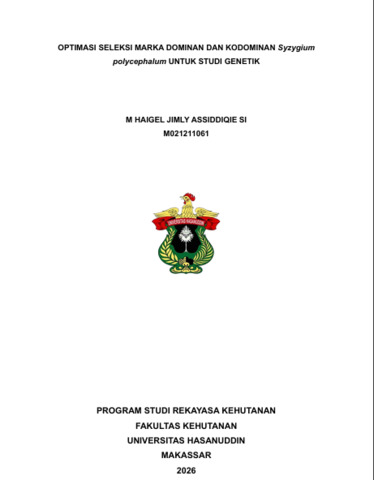 SI, M. HAIGEL JIMLY ASSIDDIQIE. (2026) OPTIMASI SELEKSI MARKA DOMINAN DAN KODOMINAN Syzygium polycephalum UNTUK STUDI GENETIK = Optimization of Dominant and Codominant Marker Selection in Syzygium polycephalum for Genetic Studies. Skripsi thesis, Universitas Hasanuddin.