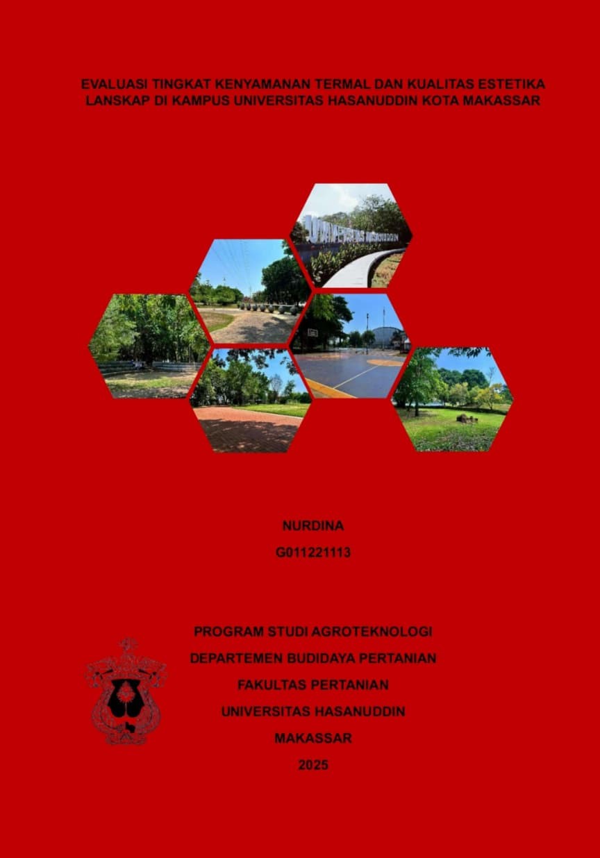 NURDINA, NURDINA (2025) EVALUASI TINGKAT KENYAMANAN TERMAL DAN KUALITAS ESTETIKA LANSKAP DI KAMPUS UNIVERSITAS HASANUDDIN KOTA MAKASSAR = Evaluation of Landscape Aesthetic Quality in Hasanuddin Park, Makassar City. Skripsi thesis, Universitas Hasanuddin.