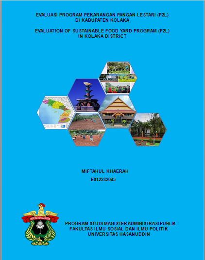 MIFTAHUL KHAERAH. Evaluasi Program Pekarangan Pangan Lestari P2L di Kabupaten Kolaka. (dibimbing oleh Nurdin Nara) Program Pekarangan Pangan Lestari (P2L) bertujuan meningkatkan ketahanan pangan rumah tangga melalui pemanfaatan pekarangan secara produktif. Penelitian ini mengevaluasi pelaksanaan Program P2L di Kabupaten Kolaka dengan menggunakan kerangka evaluasi kebijakan publik William N. Dunn melalui pendekatan deskriptif kualitatif. Data penelitian diperoleh dari enam Kelompok Wanita Tani (KWT), terdiri atas tiga KWT dengan kategori berhasil dan tiga KWT dengan kategori kurang berhasil, melalui teknik wawancara, observasi, dan dokumentasi. Evaluasi mencakup dimensi dampak, efektivitas, efisiensi, kecukupan, pemerataan, responsivitas, dan ketetapan. Hasil penelitian menunjukkan keberhasilan pelaksanaan program dipengaruhi oleh ketersediaan sumber daya, partisipasi anggota, serta dukungan teknis. KWT yang berhasil menunjukkan produktivitas tinggi dan pemerataan manfaat yang baik, sementara KWT kurang berhasil menghadapi kendala pemeliharaan, partisipasi rendah, dan dukungan terbatas. Rekomendasi penelitian ini meliputi penguatan pembinaan, penyediaan sumber daya yang memadai, serta peningkatan kapasitas anggota KWT guna memperkuat kontribusi P2L terhadap ketahanan pangan lokal. Program ini berkontribusi pada peningkatan akses pangan Beragam, Bergizi, Seimbang, dan Aman (B2SA) sebagai bagian dari upaya penguatan ketahanan pangan rumah tangga dan dukungan terhadap percepatan penurunan stunting di Kabupaten Kolaka.