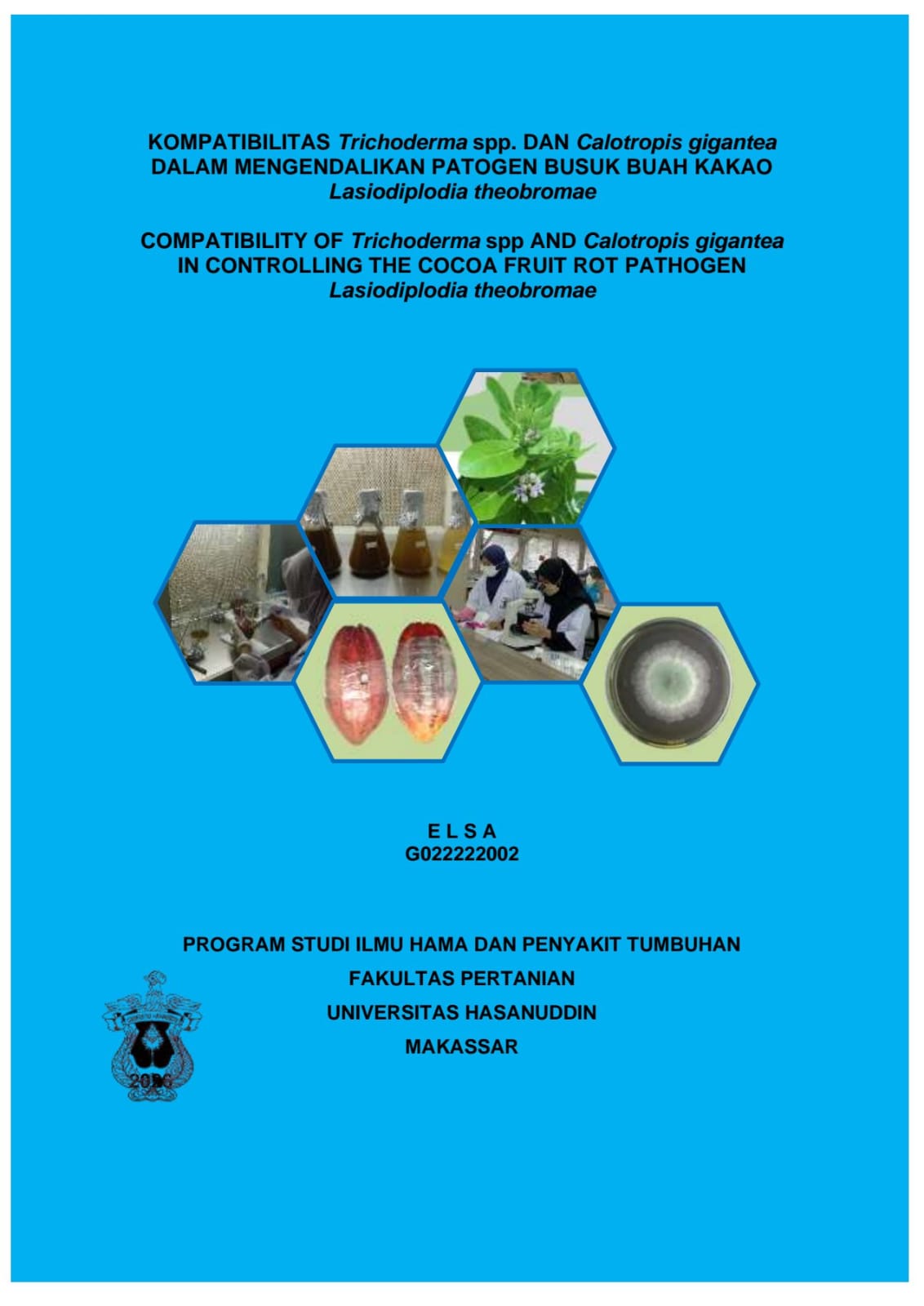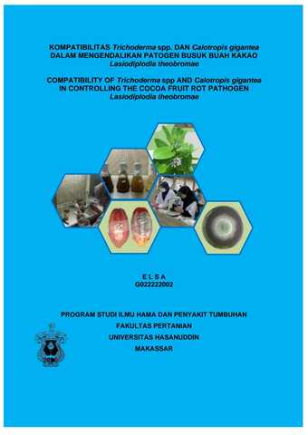ELSA, ELSA (2026) KOMPATIBILITAS Trichoderma spp. DAN Calotropis gigantea DALAM MENGENDALIKAN PATOGEN BUSUK BUAH KAKAO Lasiodiplodia theobromae = COMPATIBILITY OF Trichoderma spp AND Calotropis gigantea IN CONTROLLING THE COCOA FRUIT ROT PATHOGEN Lasiodiplodia theobromae. Thesis thesis, Universitas Hasanuddin.