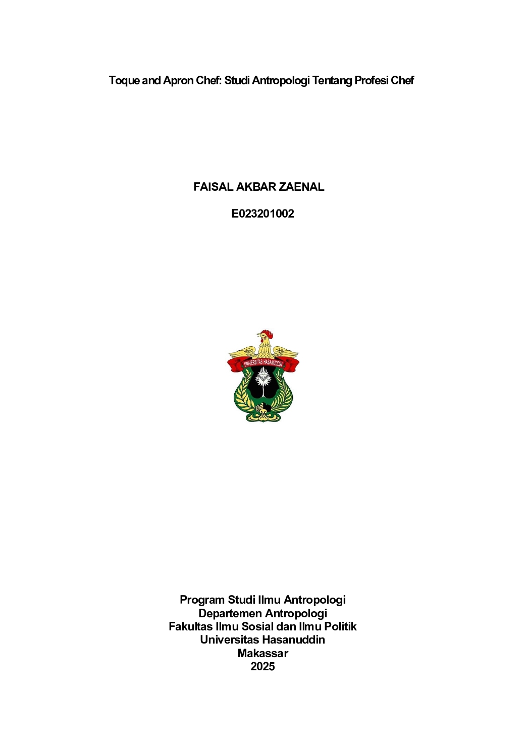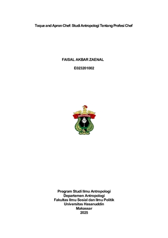 ZAENAL, FAISAL AKBAR (2025) Toque and Apron Chef: Studi Antropologi Tentang Profesi Chef = Toque and Apron Chef: An Anthropological Study of the Chef Profession. Disertasi thesis, Universitas Hasanuddin.