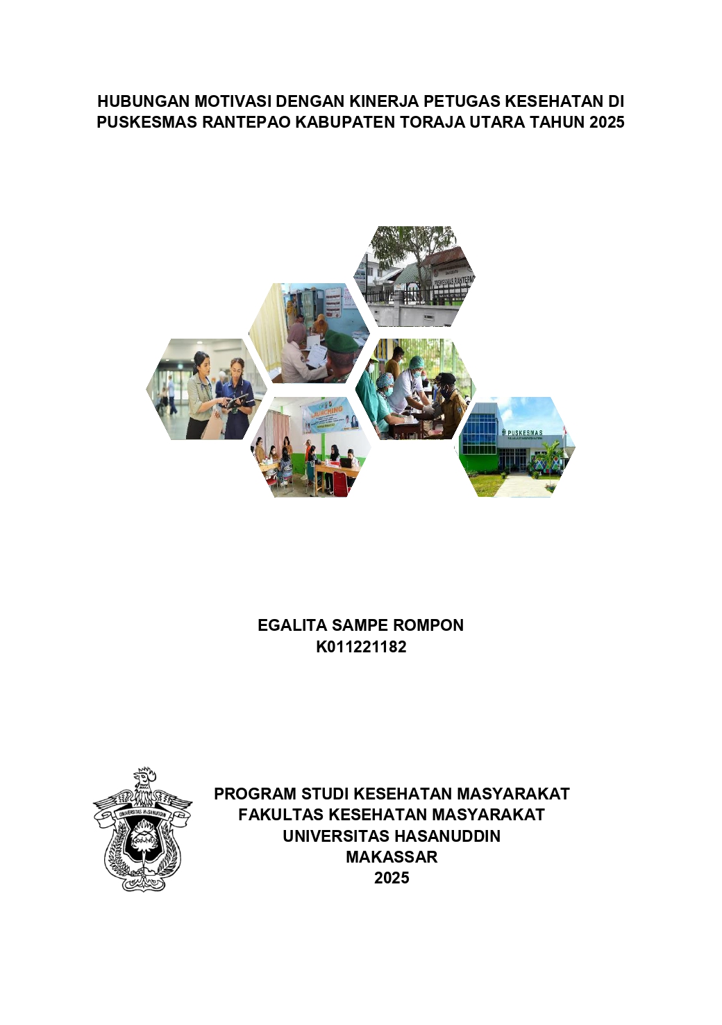 ROMPON, EGALITA SAMPE (2026) Hubungan Motivasi dengan Kinerja Petugas Kesehatan di Puskesmas Rantepao Kabupaten Toraja Utara Tahun 2025 = Hubungan Motivasi dengan Kinerja Petugas Kesehatan di Puskesmas Rantepao Kabupaten Toraja Utara Tahun 2025. Skripsi thesis, Universitas Hasanuddin.