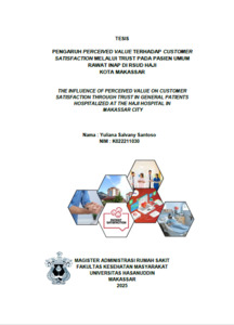 SANTOSO, YULIANA SALVANY (2026) PENGARUH PERCEIVED VALUE TERHADAP CUSTOMER SATISFACTION MELALUI TRUST PADA PASIEN UMUM RAWAT INAP DI RSUD HAJI KOTA MAKASSAR = THE INFLUENCE OF PERCEIVED VALUE ON CUSTOMER SATISFACTION THROUGH TRUST IN GENERAL PATIENTS HOSPITALIZED AT THE HAJI HOSPITAL IN MAKASSAR CITY. Thesis thesis, Universitas Hasanuddin.