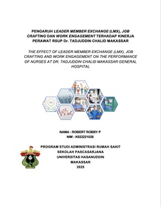 PALULUNGAN, ROBERT ROBBY (2025) PENGARUH LEADER MEMBER EXCHANGE (LMX), JOB CRAFTING DAN WORK ENGAGEMENT TERHADAP KINERJA PERAWAT RSUP Dr. TADJUDDIN CHALID MAKASSAR = THE EFFECT OF LEADER MEMBER EXCHANGE (LMX), JOB CRAFTING AND WORK ENGAGEMENT ON THE PERFORMANCE OF NURSES AT DR. TADJUDDIN CHALID MAKASSAR GENERAL HOSPITAL. Thesis thesis, Universitas Hasanuddin.
