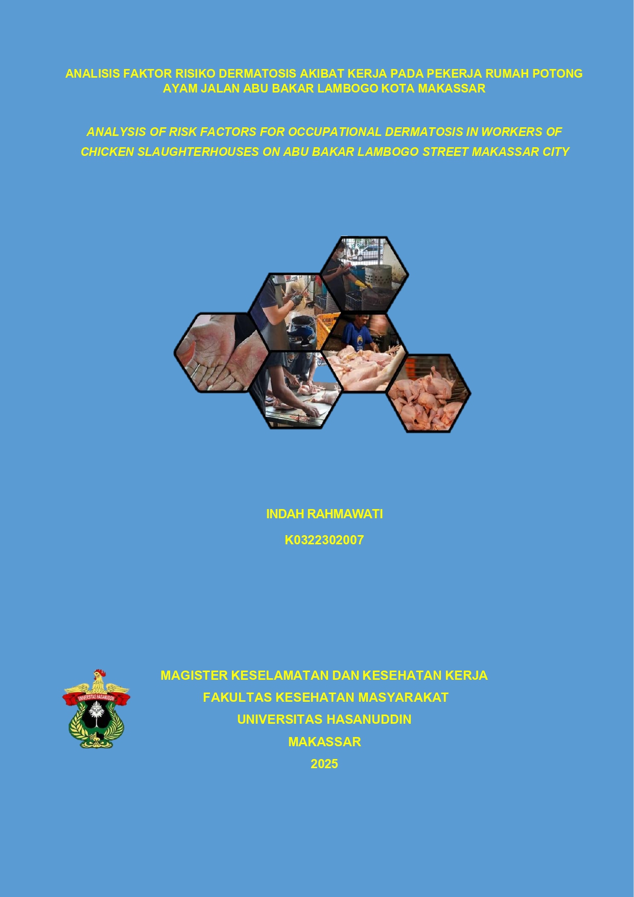 RAHMAWATI, INDAH (2025) ANALISIS FAKTOR RISIKO DERMATOSIS AKIBAT KERJA PADA PEKERJA RUMAH POTONG AYAM JALAN ABU BAKAR LAMBOGO KOTA MAKASSAR = ANALYSIS OF RISK FACTORS FOR OCCUPATIONAL DERMATOSIS IN WORKERS OF CHICKEN SLAUGHTERHOUSES ON ABU BAKAR LAMBOGO STREET MAKASSAR CITY. Thesis thesis, Universitas Hasanuddin.