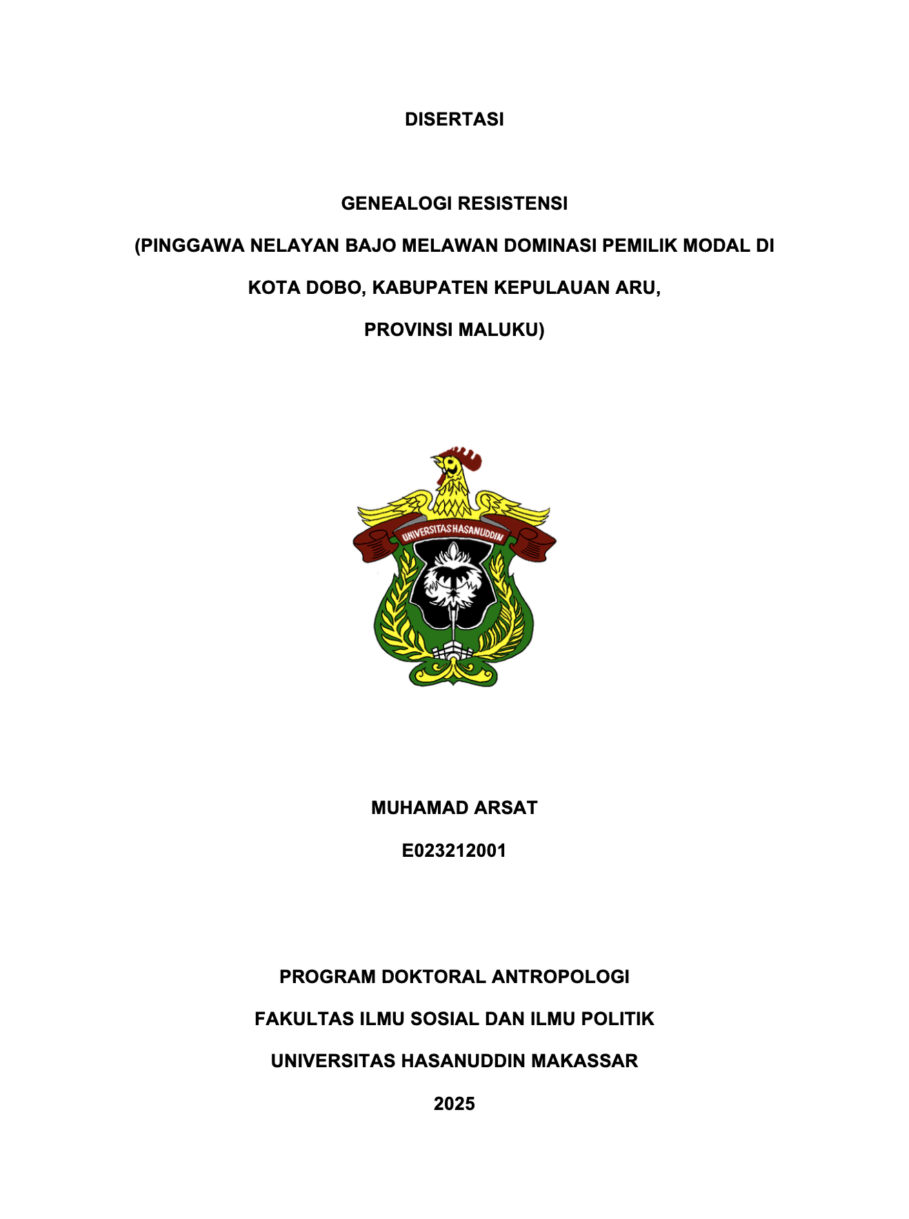 ARSAT, MUHAMAD (2025) Genealogi Resistensi (Pinggawa Nelayan Bajo Melawan Dominasi Pemilik Modal di Kota Dobo, Kabupaten Kepulauan Aru, Provinsi Maluku) = Genealogy of Resistance (Pinggawa Fishermen of Bajo Against Domination of Capital Owners in Dobo City, Aru Islands Regency, Maluku Province). Disertasi thesis, UNIVERSITAS HASANUDDIN.