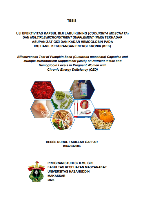 GAFFAR, BESSE NURUL FADILLAH (2025) UJI EFEKTIVITAS KAPSUL BIJI LABU KUNING (CUCURBITA MOSCHATA) DAN MULTIPLE MICRONUTRIENT SUPPLEMENT (MMS) TERHADAP ASUPAN ZAT GIZI DAN KADAR HEMOGLOBIN PADA IBU HAMIL KEKURANGAN ENERGI KRONIK (KEK) = Effectiveness Test of Pumpkin Seed (Cucurbita moschata) Capsules and Multiple Micronutrient Supplement (MMS) on Nutrient Intake and Hemoglobin Levels in Pregnant Women with Chronic Energy Deficiency (CED). Thesis thesis, Universitas Hasanuddin.
