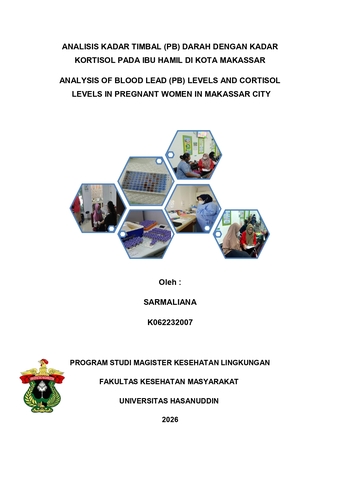 SARMALIANA, SARMALIANA (2028) ANALISIS KADAR TIMBAL (PB) DARAH DENGAN KADAR KORTISOL PADA IBU HAMIL DI KOTA MAKASSAR = ANALYSIS OF BLOOD LEAD (PB) LEVELS AND CORTISOL LEVELS IN PREGNANT WOMEN IN MAKASSAR CITY. Thesis thesis, Universitas Hasanuddin.