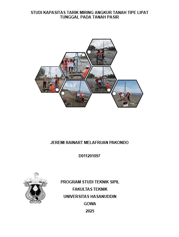 PAKONDO, JEREMI RAINART MALAFRUAN (2025) Studi Kapasitas Tarik Miring Angkur Tanah Tipe Lipat Tunggal Pada Tanah Pasir = Study Of The Inclined Tensile Capacity Of Single Folding Type Soil Anchors In Sandy Soil. Skripsi thesis, Universitas Hasanuddin.
