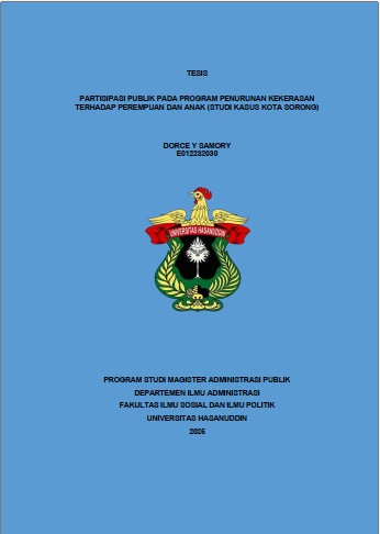 SAMORI, DORCE Y. (2025) PARTISIPASI PUBLIK PADA PROGRAM PENURUNAN KEKERASAN TERHADAP PEREMPUAN DAN ANAK (STUDI KASUS KOTA SORONG) = PUBLIC PARTICIPATION IN PROGRAMS TO REDUCE VIOLENCE AGAINST WOMEN AND CHILDREN (CASE STUDY OF SORONG CITY). Thesis thesis, Universitas Hasanuddin.