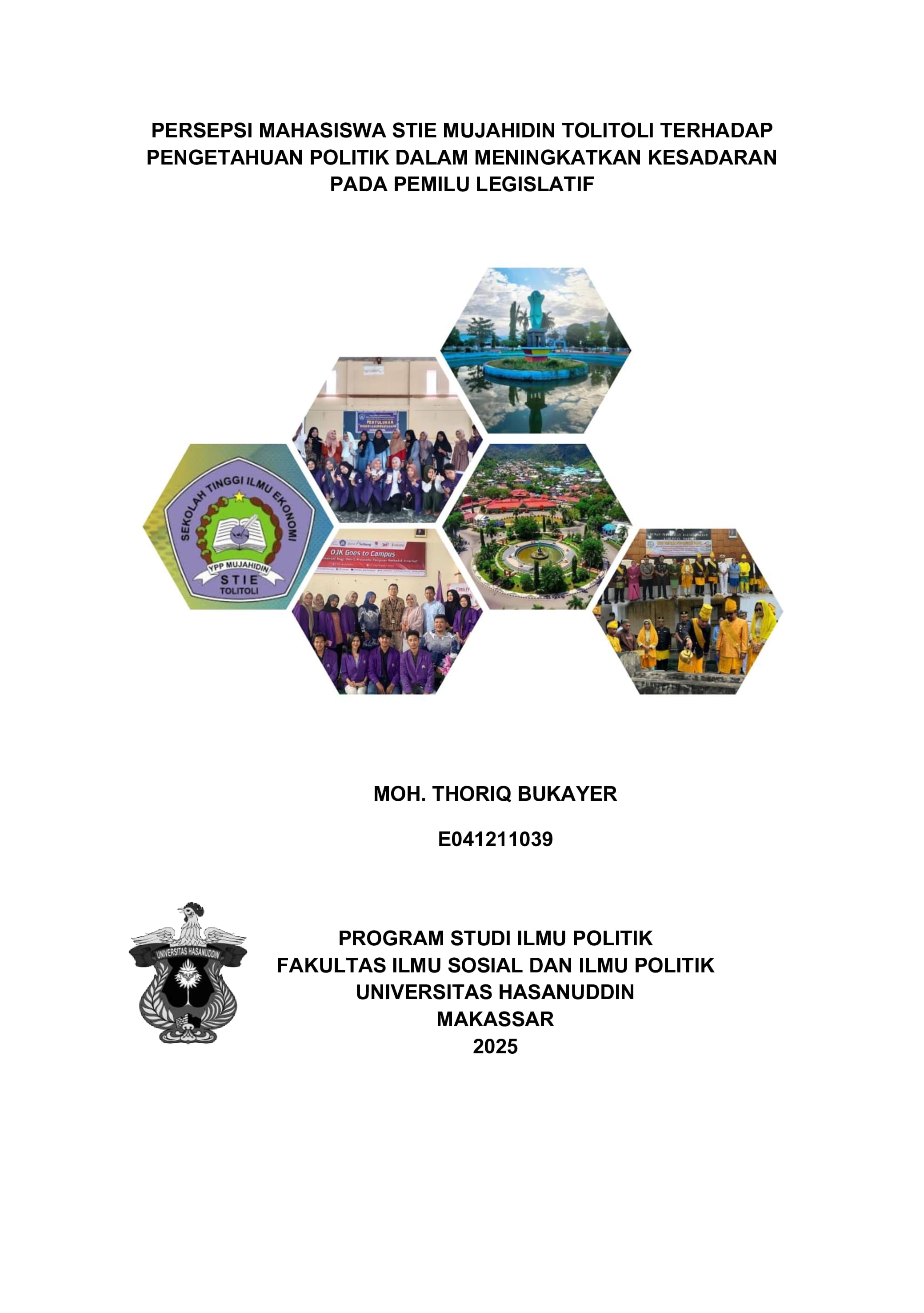 BUKAYER, MOH. THORIQ (2025) Persepsi Politik Mahasiswa STIE Mujahidin Tolitoli Terhadap Pengetahuan Politik Pada Pemilu Legislatif = Political Perceptions of STIE Mujahidin Tolitoli Students of Political Knowledge in Legislative Elections. Skripsi thesis, Universitas Hasanuddin.