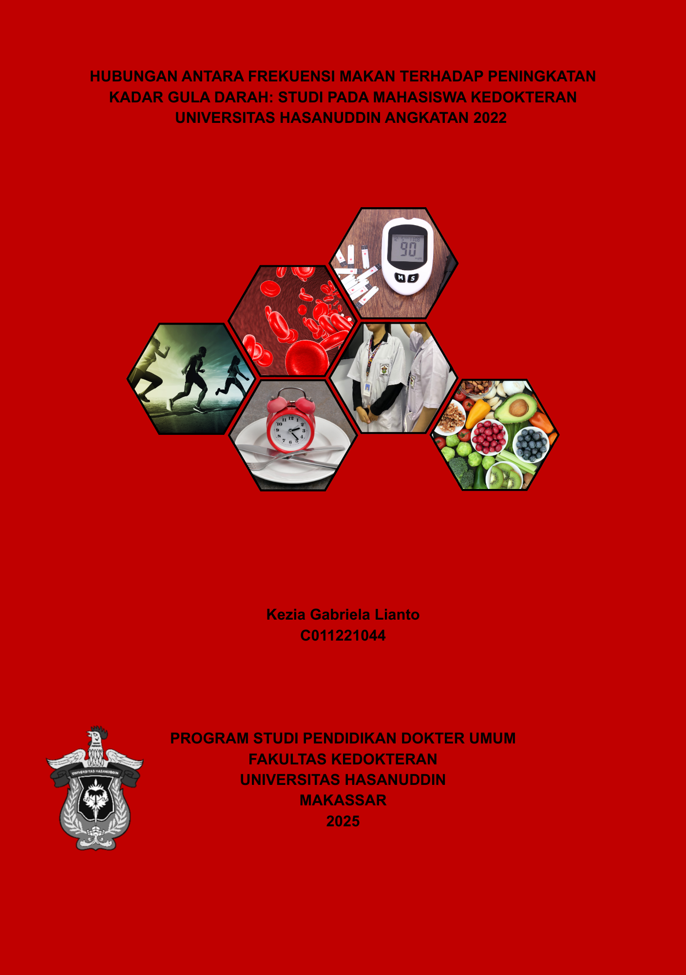 LIANTO, KEZIA GABRIELA (2025) HUBUNGAN ANTARA FREKUENSI MAKAN TERHADAP PENINGKATAN KADAR GULA DARAH: STUDI PADA MAHASISWA FAKULTAS KEDOKTERAN UNIVERSITAS HASANUDDIN ANGKATAN 2022 = THE RELATIONSHIP BETWEEN EATING FREQUENCY AND INCREASED BLOOD GLUCOSE LEVELS: A STUDY ON STUDENTS OF THE FACULTY OF MEDICINE, HASANUDDIN UNIVERSITY BATCH OF 2022. Skripsi thesis, Universitas Hasanuddin.