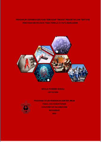 GOSALI, NICOLE PHOENIX (2025) Pengaruh Ceramah Edukasi Terhadap Tingkat Pengetahuan Tentang Pencegahan HIV/AIDS Pada Remaja di Kota Makassar = The Influence of Educational Lectures upon Knowledge Levels of HIV/AIDS Prevention Among Adolescents in Makassar City. Skripsi thesis, Universitas Hasanuddin.