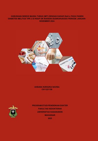 NAVISA, AHSANA NURAZKA (2025) Hubungan Indeks Massa Tubuh (IMT) dengan Kadar Hba1c pada Pasien Diabetes Melitus Tipe 2 Di RSUP Dr Wahidin Sudirohusodo Periode Januari-Desember 2024 = NAVISA. The Relationship between Body Mass Index (BMI) and HbA1c Levels in Type 2 Diabetes Mellitus Patients at Dr. Wahidin Sudirohusodo General Hospital from January - December 2024. Skripsi thesis, Universitas Hasanuddin.