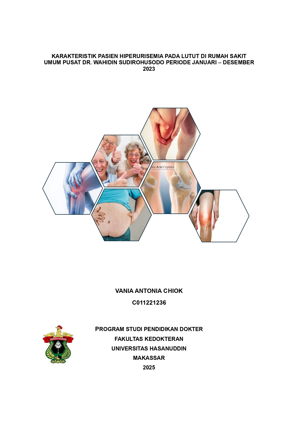 CHIOK, VANIA ANTONIA (2025) Karakteristik Pasien Hiperurisemia pada Lutut di Rumah Sakit Umum Pusat Dr. Wahidin Sudirohusodo Periode Januari – Desember 2023 = Characteristics of Patients with Knee Hyperuricemia at Dr. Wahidin Sudirohusodo General Hospital for the Period of January – December 2023. Skripsi thesis, Universitas Hasanuddin.