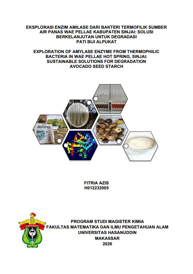 AZIS, FITRIA (2026) EKSPLORASI ENZIM AMILASE DARI BAKTERI TERMOFILIK SUMBER AIR PANAS WAE PELLAE KABUPATEN SINJAI: SOLUSI BERKELANJUTAN UNTUK DEGRADASI PATI BIJI ALPUKAT = EXPLORATION OF AMYLASE ENZYME FROM THERMOPHILIC BACTERIA IN WAE PELLAE HOT SPRING, SINJAI: SUSTAINABLE SOLUTIONS FOR DEGRADATION AVOCADO SEED STARCH. Thesis thesis, Universitas Hasanuddin.