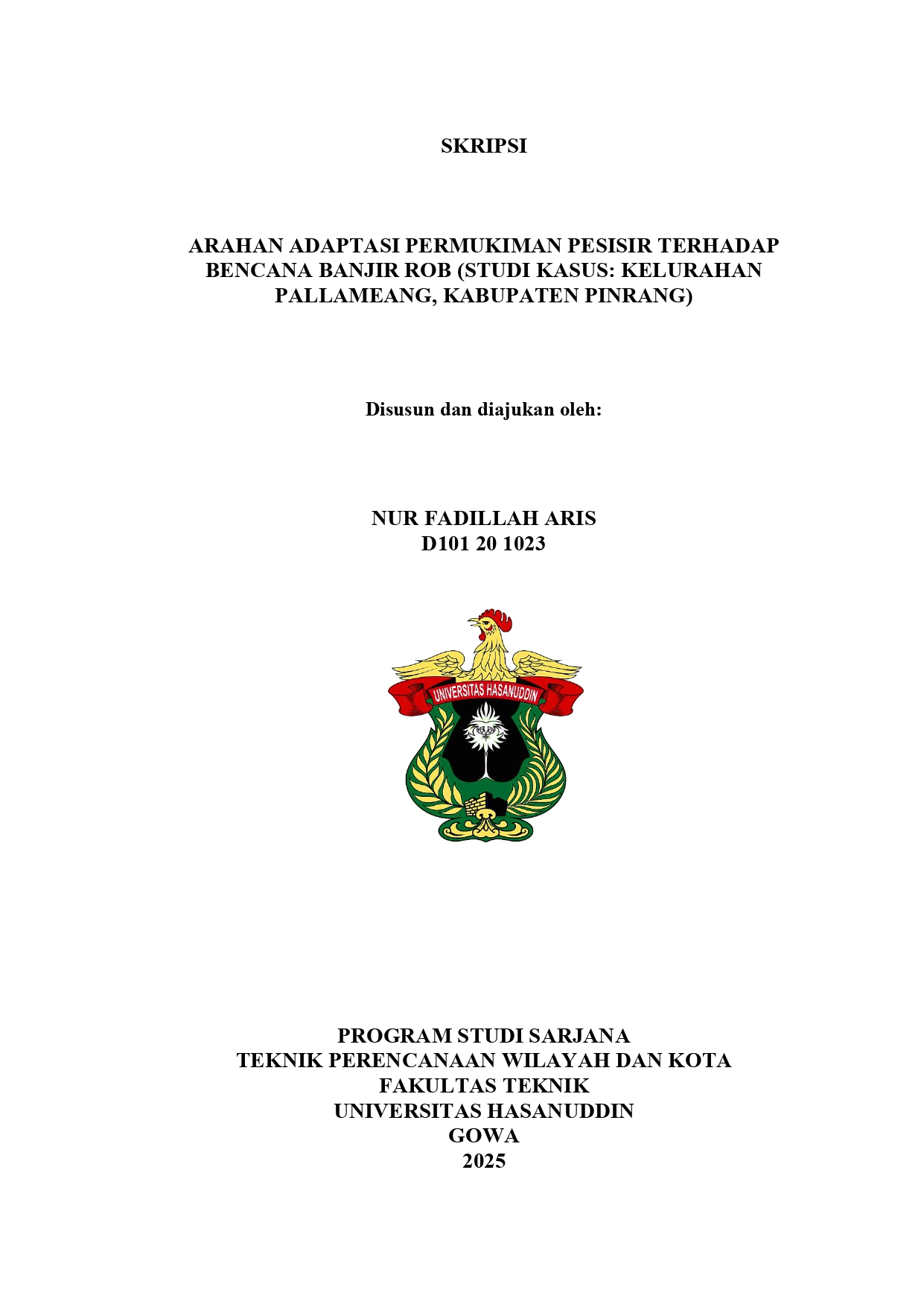 ARIS, NUR FADILLAH (2025) ARAHAN ADAPTASI PERMUKIMAN PESISIR TERHADAP BENCANA BANJIR ROB (STUDI KASUS: KELURAHAN PALLAMEANG, KABUPATEN PINRANG) = Instructions for the Adaptation of Coastal Settlements to the Rob Flood Disaster (Case Study: Pallameang, Pinrang District). Skripsi thesis, Universitas Hasanuddin.