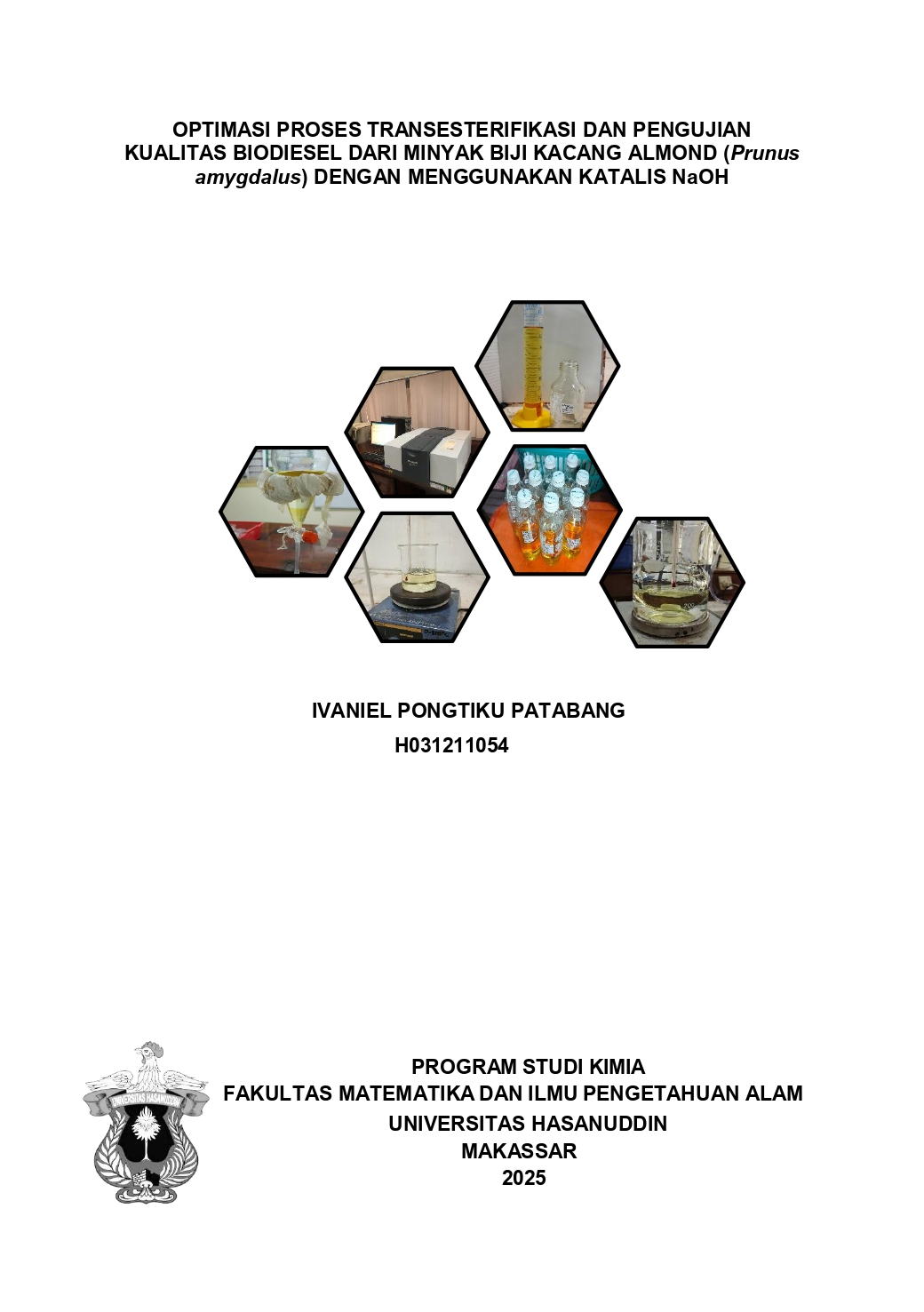 PATABANG, IVANIEL PONGTIKU (2025) OPTIMASI PROSES TRANSESTERIFIKASI DAN PENGUJIAN KUALITAS BIODIESEL DARI MINYAK BIJI KACANG ALMOND (Prunus amygdalus) DENGAN MENGGUNAKAN KATALIS NaOH = Optimization of the Transesterification Process and Quality Evaluation of Biodiesel from Almond Seed Oil (Prunus amygdalus) Using NaOH as a Catalyst. Skripsi thesis, Universitas Hasanuddin.