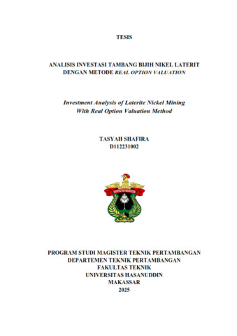 SHAFIRA, TASYAH (2025) ANALISIS INVESTASI TAMBANG BIJIH NIKEL LATERIT DENGAN METODE REAL OPTION VALUATION = Investment Analysis of Laterite Nickel Mining With Real Option Valuation Method. Thesis thesis, Universitas Hasanuddin.