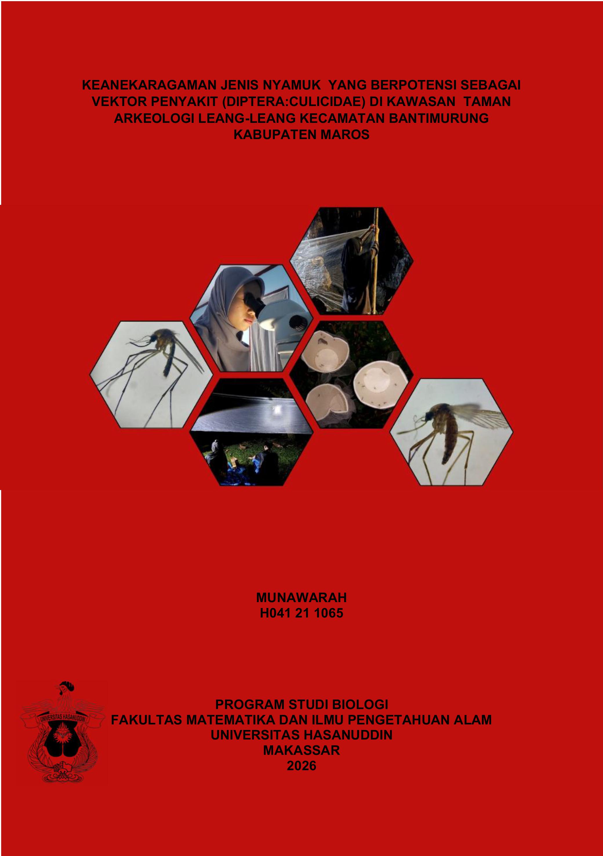 MUNAWARAH, MUNAWARAH (2026) Keanekaragaman Jenis Nyamuk yang Berpotensi sebagai Vektor Penyakit (Diptera:Culicidae) di Kawasan Taman Arkeologi Leang-Leang Kecamatan Bantimurung Kabupaten Maros = Diversity of Mosquito Species with Potential as Disease Vectors (Diptera: Culicidae) in the Leang-Leang Archaeological Park, Maros Regency. Skripsi thesis, Universitas Hasanuddin.