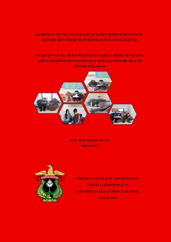 ISLAM, ALIF MUHAMMAD (2025) GAMBARAN TINGKAT PENGETAHUAN PASIEN HIPERTENSI TENTANG DETEKSI DINI STROKE DI PUSKESMAS JONGAYA MAKASSAR = OVERVIEW LEVEL OF KNOWLEDGE ON EARLY STROKE DETECTION AMONG HYPERTENSIVE PATIENTS AT JONGAYA PRIMARY HEALTH CENTER MAKASSAR. Skripsi thesis, Universitas Hasanuddin.