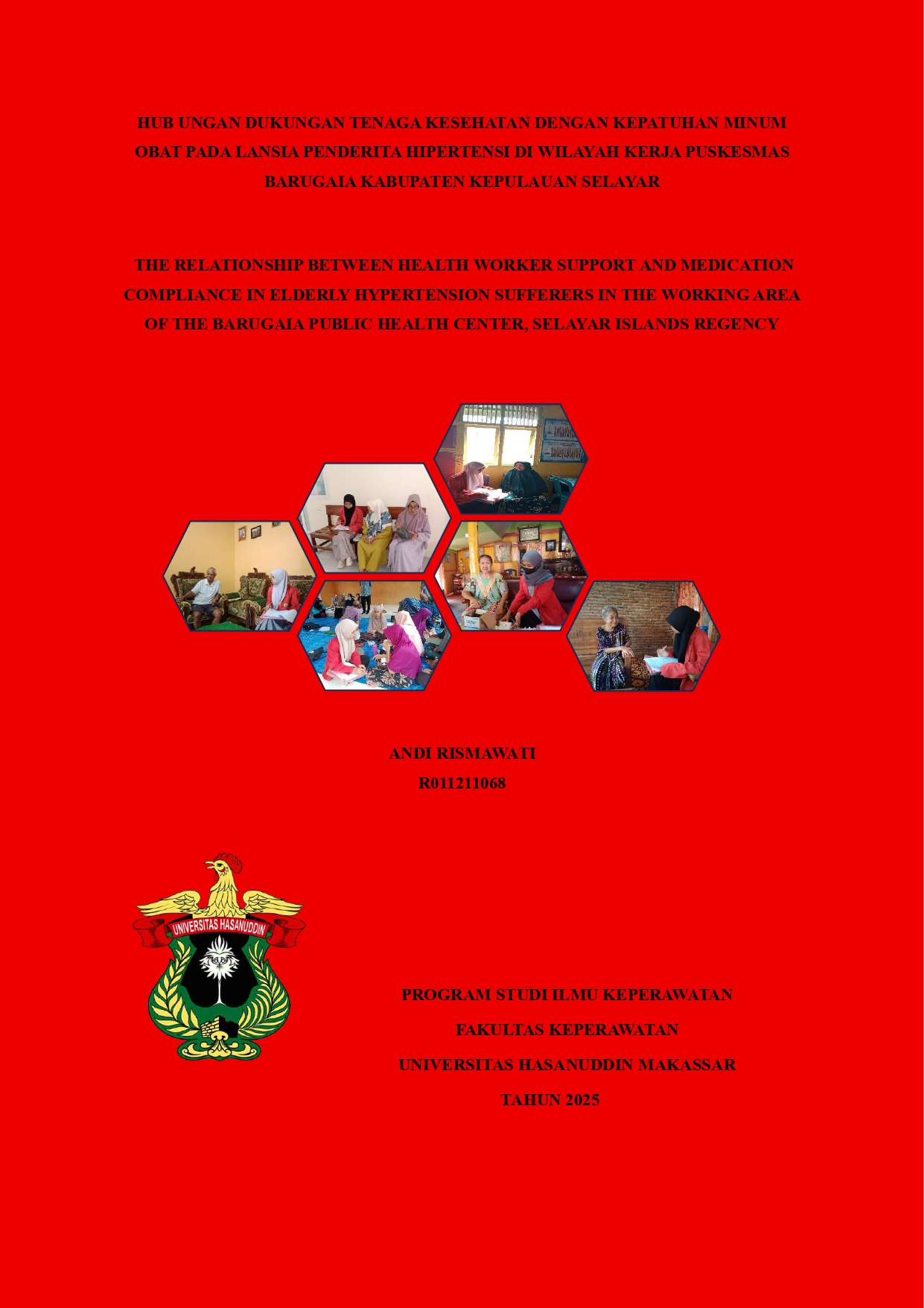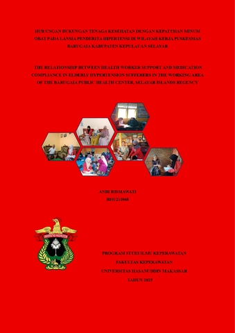 RISMAWATI, ANDI (2025) HUBUNGAN DUKUNGAN TENAGA KESEHATAN DENGAN KEPATUHAN MINUM OBAT PADA LANSIA PENDERITA HIPERTENSI DI WILAYAH KERJA PUSKESMAS BARUGAIA KABUPATEN KEPULAUAN SELAYAR = THE RELATIONSHIP BETWEEN HEALTH WORKER SUPPORT AND MEDICATION COMPLIANCE IN ELDERLY HYPERTENSION SUFFERERS IN THE WORKING AREA OF THE BARUGAIA PUBLIC HEALTH CENTER, SELAYAR ISLANDS REGENCY. Skripsi thesis, Universitas Hasanuddin.