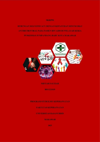 FAUZIAH, MIFTAH (2025) HUBUNGAN SELF EFFICACY DENGAN KEPATUHAN MINUM OBAT ANTIRETROVIRAL PADA PASIEN HIV/AIDS DI WILAYAH KERJA PUSKESMAS JUMPANDANG BARU KOTA MAKASSAR = ASSOCIATION BETWEEN SELF EFFICACY AND ANTIRETROVIRAL MEDICATION ADHERENCE AMONG HIV/AIDS PATIENTS IN THE SERVICE AREA OF JUMPANDANG BARU HEALTH CENTER, MAKASSAR, INDONESIA. Skripsi thesis, Universitas Hasanuddin.