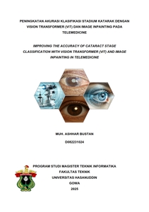 BUSTAN, MUH. ASHHAR (2025) PENINGKATAN AKURASI KLASIFIKASI STADIUM KATARAK DENGAN VISION TRANSFORMER (ViT) DAN IMAGE INPAINTING PADA TELEMEDICINE = IMPROVING THE ACCURACY OF CATARACT STAGE CLASSIFICATION WITH VISION TRANSFORMER (VIT) AND IMAGE INPAINTING IN TELEMEDICINE. Thesis thesis, Universitas Hasanuddin.