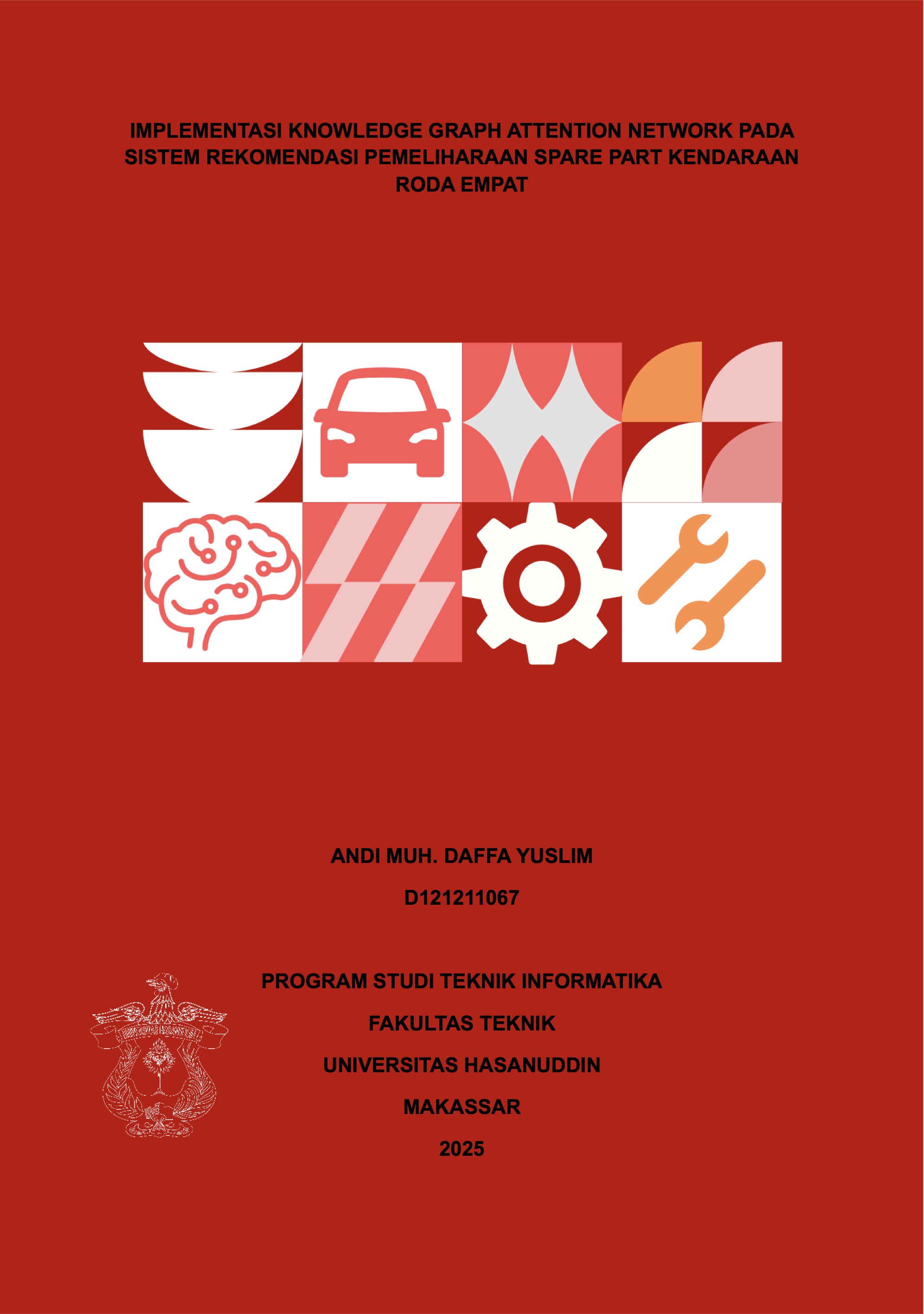 YUSLIM, ANDI MUH. DAFFA (2025) Implementasi Knowledge Graph Attention Network pada Sistem Rekomendasi Pemeliharaan Spare Part Kendaraan Roda Empat = Implementation of Knowledge Graph Attention Network on a Recommendation System for Four-Wheeled Vehicle Spare Part Maintenance. Skripsi thesis, Universitas Hasanuddin.