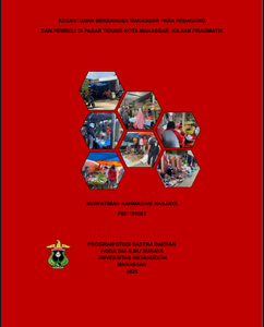 Nurfatimah Rahmadani Hasjaya. 2025. Kesantunan Berbahasa Makassar Para Pedagang Dan Pembeli Di Pasar Tidung Kota Makassar: Kajian Pragmatik (Dibimbing oleh Ery Iswary) Penelitian ini bertujuan untuk menganalisis bentuk kesantunan berbahasa dan jenis sapaan yang digunakan dalam interaksi jual beli antara pedagang dan pembeli di Pasar Tidung Kota Makassar berdasarkan kajian pragmatik. Latar belakang penelitian ini adalah pentingnya penggunaan bahasa yang santun sebagai cerminan kepribadian dan sarana komunikasi yang efektif untuk menciptakan suasana yang menyenangkan dan harmonis dalam proses perdagangan. Penelitian ini menggunakan metode deskriptif kualitatif dengan lokasi di Pasar Tidung, Kota Makassar. Sumber data primer adalah tuturan atau percakapan langsung yang dilakukan antara pedagang dan pembeli yang mengandung sapaan dan bentuk kesantunan dalam berbicara. Metode pengumpulan data dilakukan melalui observasi, teknik rekam, teknik simak, dan teknik catat. Analisis data berpedoman pada teori pragmatik, khususnya bentuk kesantunan berbahasa Leech yang meliputi enam maksim, dan klasifikasi jenis sapaan. Hasil penelitian menunjukkan bahwa interaksi berbahasa Makassar antara pedagang dan pembeli di Pasar Tidung Kota Makassar merealisasikan semua bentuk kesantunan berbahasa, yang mencakup enam maksim Leech. Maksim-maksim tersebut adalah: Maksim Kebijaksanaan, Maksim Penerimaan, Maksim Kemurahan, Maksim Kerendahan, Maksim Kesetujuan, dan Maksim Kesimpatian. Adapun jenis sapaan yang digunakan dalam lingkungan Pasar Tidung meliputi sapaan nama diri, pronomina persona, kekerabatan, gelar, pangkat dan jabatan, serta profesi. Contoh-contoh sapaan yang ditemukan antara lain: Pindu, Cikaling, Daeng, Karaeng, Andi, Aji, Bu Guru, Ustad dan Pak Dokter. Penelitian ini diharapkan dapat menambah wawasan mengenai kesantunan berbahasa dan penggunaan kata sapaan agar masyarakat Makassar dapat meminimalisir kesalahpahaman dan ketersinggungan dalam berinteraksi.
