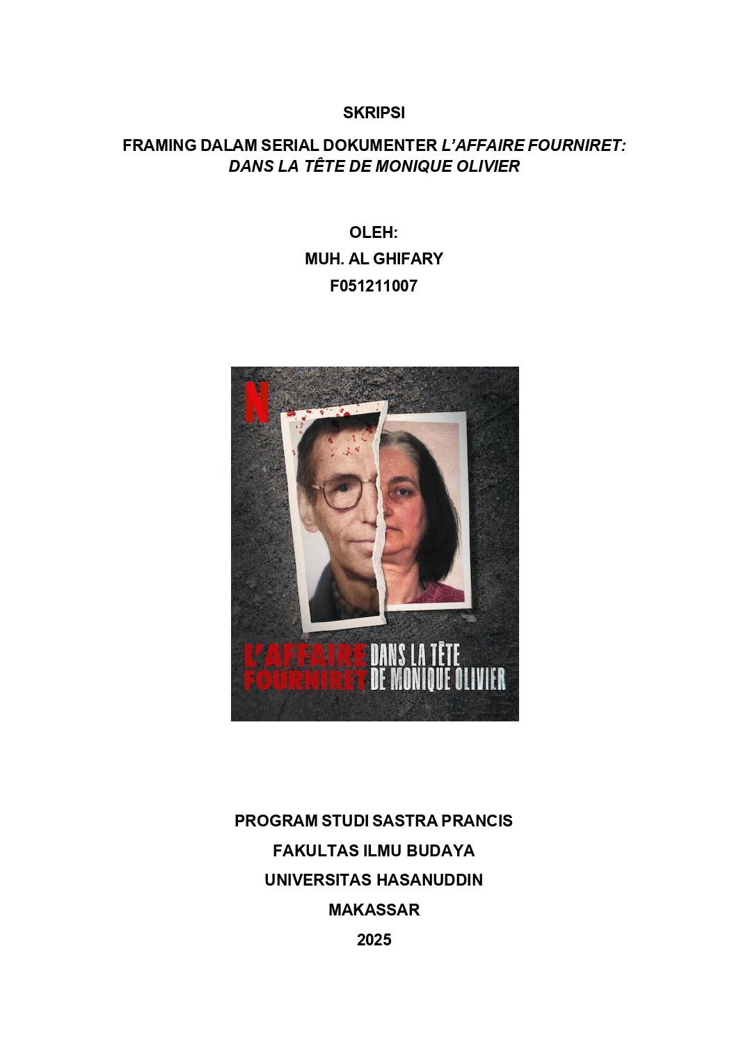 GHIFARY, MUH. AL (2025) Framing dalam Serial Dokumenter L'Affaire Fourniret: Dans La Tête de Monique Olivier = Framing in the Documentary Series L’Affaire Fourniret: Dans La Tête de Monique Olivier. Skripsi thesis, Universitas Hasanuddin.