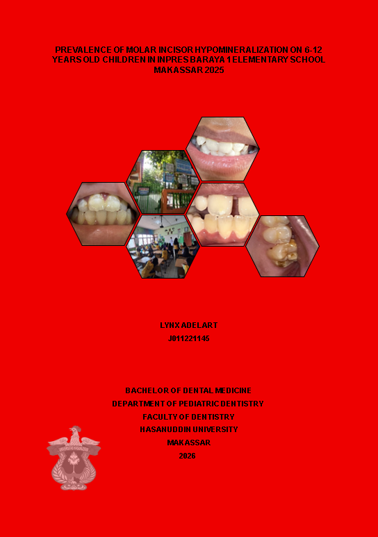 ADELART, LYNX (2026) Prevalensi Molar Incisor Hypomineralization pada anak umur 6-12 Tahun di SD Inpres Baraya 1 Makassar 2025 = Prevalence of Molar Incisor Hypomineralization on 6-12 Years Old Children in Inpres Baraya 1 Elementary School Makassar 2025. Skripsi thesis, Universitas Hasanuddin.